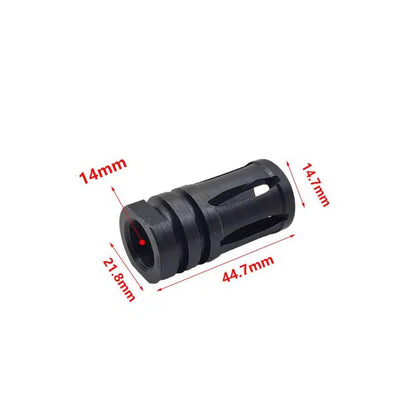 Der 14 mm CCW M16A1 Stahl-Metall-Feuerdämpfer vereint Haltbarkeit und Effektivität mit seiner QPQ-verarbeiteten Oberfläche. Entwickelt für M14 CCW-Gewinde, besteht dieses Produkt aus hochwertigem Stahl, wiegt 55 g und misst 44,7 mm bei einem Außendurchmesser von 21,8 mm und einem Innendurchmesser von 14,7 mm.