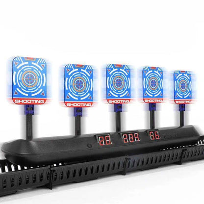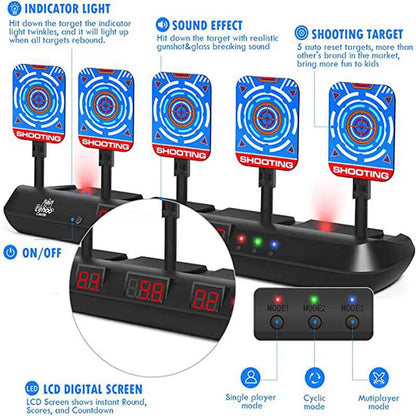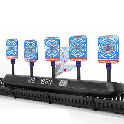 Fordern Sie sich selbst heraus mit dem elektronischen Laufschießgerät mit automatischer Rückstellung und 5 Zielscheiben. Mit automatischer Rückstellung, langer Laufschiene, digitalem LCD-Display und Soundeffekten werden Ihre Schießkünste auf die Probe gestellt. Einfach zu installieren und batteriebetrieben – die perfekte Ergänzung für Ihr Schießerlebnis. Auf geht's!
