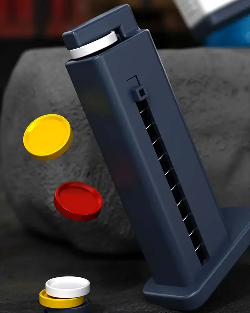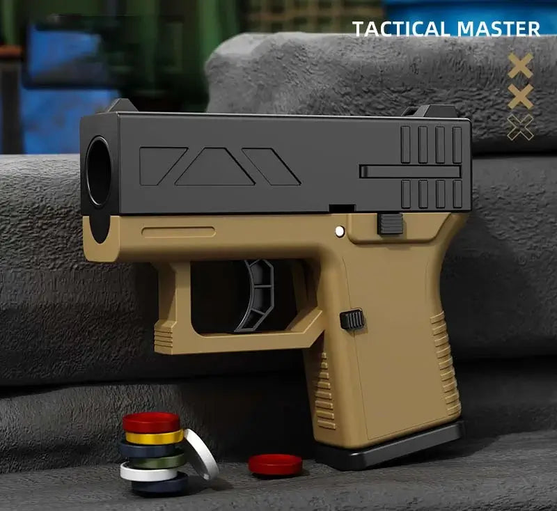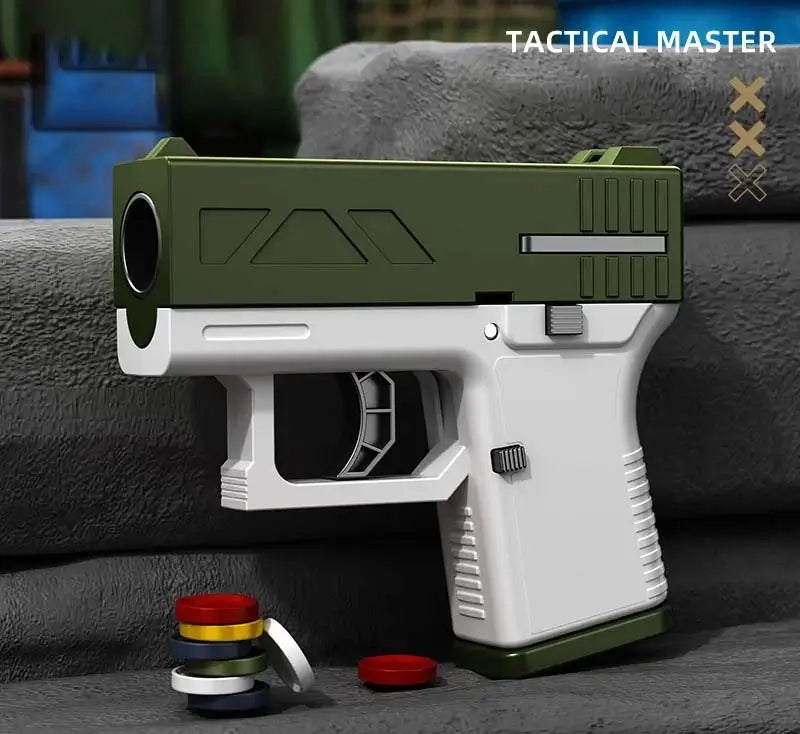 Mit unserer GT-V halbautomatischen Wurfscheiben-Spielzeugpistole erleben Sie Spielspaß auf einem ganz neuen Niveau! Dank der einzigartigen Magazinzuführung und der Sperre für die letzte Patrone ist sie das ultimative Spielzeug für jedes Kind (oder Junggebliebene). Der Kunststoffblaster und die Wurfscheiben sind leicht und einfach zu handhaben, und der halbautomatische Feuermodus sorgt für rasanten Spaß. Erhältlich in Hellbraun, Grün oder Grau und inklusive 50 Wurfscheiben. Machen Sie sich bereit für bis zu 10 m weiten Wurf!