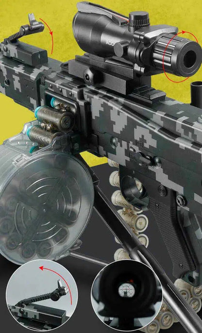 Der Lehui MG3 ist perfekt für Fans jeden Alters und bietet ein realistisches und unterhaltsames Spielerlebnis. Seine drei Feuermodi passen sich verschiedenen Spielstilen an, während das verstellbare Zielfernrohr und das ergonomische Design eine präzise und komfortable Handhabung gewährleisten. Ob Solospiel oder Wettkampf – dieser Blaster garantiert stundenlangen Spielspaß.