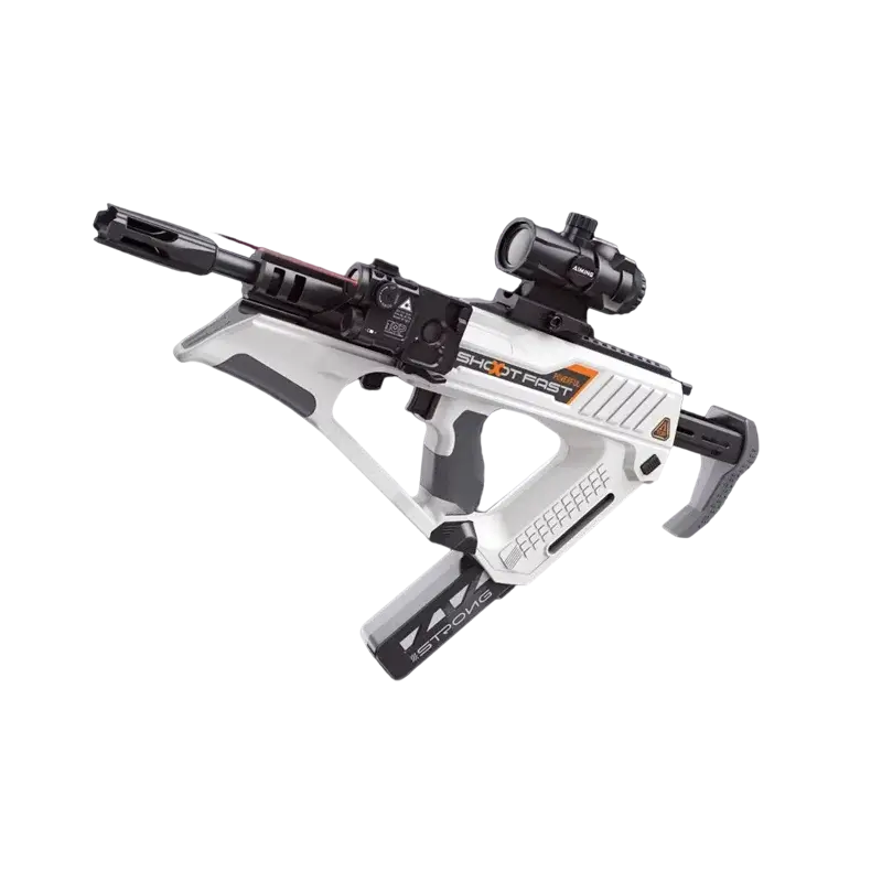 Die Lehui Star Falcon X Bullup Orbeez Pistole verfügt über halbautomatische und vollautomatische Feuermodi, sodass Sie jede Situation im Griff haben. Der ausziehbare Schaft und die oberen und seitlichen Schienen ermöglichen individuelle Anpassungen. Der mitgelieferte Schalldämpfer verleiht mit Leuchtspureffekten einen stilvollen Touch. Vertrauen Sie dem zuverlässigen und langlebigen ABS-Kunststoff von Lehui, der führenden Marke für Gelpistolen.