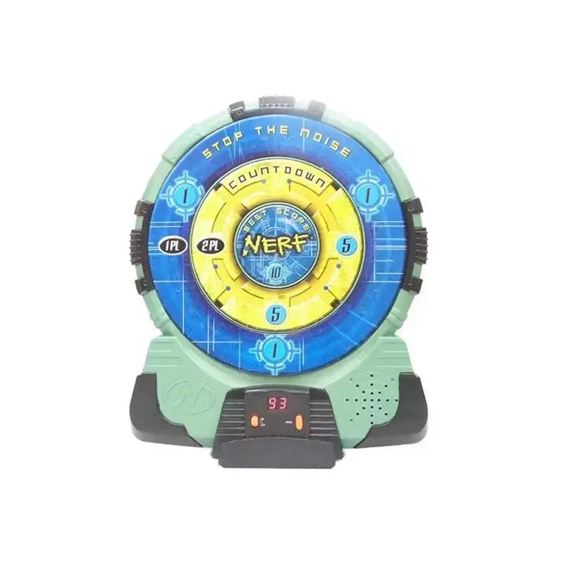 Erhöhen Sie Ihr Nerf-Spiel mit der sprechenden elektronischen NERF Dart-Anzeigetafel. Genießen Sie Licht- und Soundeffekte, während Sie Ihre Zielgenauigkeit verbessern. Dank Stoßdämpfer und Hakenloch für einfache Wandmontage können Sie alleine spielen oder einen Freund in drei Spielmodi herausfordern. Batteriebetrieben für mehr Komfort.