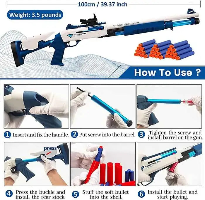 Wir präsentieren den UDL XM1014 Manual Pump Nerf Shotgun Shell Eject Blaster – die ultimative Waffe für realistische Nerf-Schlachten! Mit seinem 1:1-Design, der robusten Metall- und Nylonkonstruktion und dem verstellbaren Schulterstück bietet dieser Blaster Feuerkraft von bis zu 70 FPS und eine Schussreichweite von 15 Metern. Bereit für Action? Pumpen, schießen und Patronen für jede Runde auswerfen!