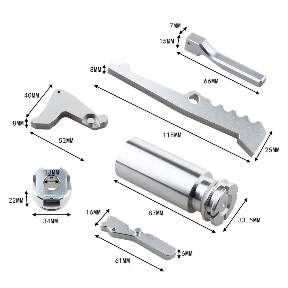Rüsten Sie Ihren Worker Caliburn Blaster mit unseren exklusiven Metall-Upgrade-Kits auf. Diese Teile aus hochwertiger Aluminiumlegierung machen Ihren Blaster robuster und langlebiger. Das einfach zu montierende Kit enthält eine Kolbenstange, einen Abzug, einen Magazinauslöser und eine Verschlusskappe aus Metall. Bringen Sie Ihren Blaster mit diesen Upgrades auf das nächste Level.