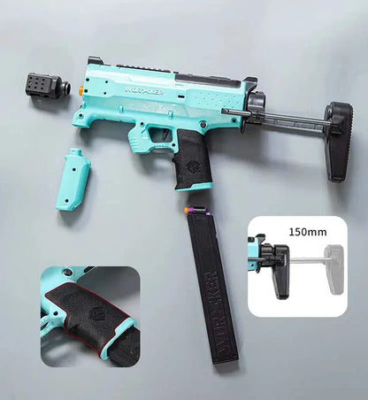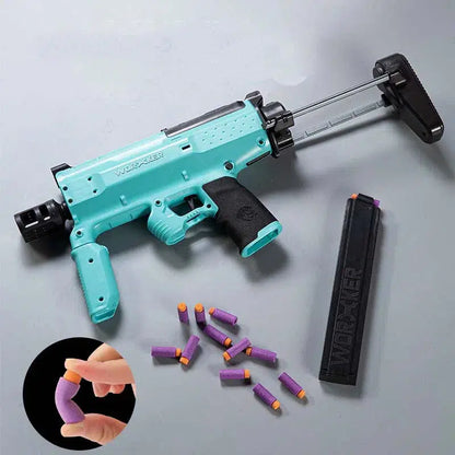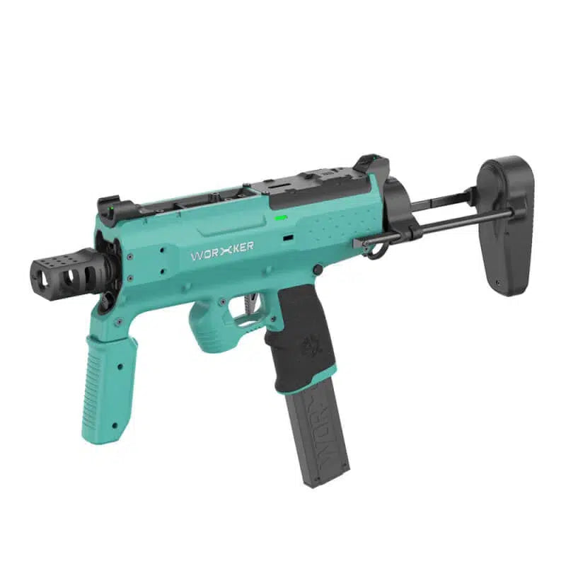 Dieser Worker Phoenix 2.0 Blaster wird von sechs Schwungrädern angetrieben, verfügt über eine einstellbare Geschwindigkeit, eine schnelle Auslösung und einen verbesserten Motor. Der Schaft ist gleichzeitig Batteriefach und ausziehbar. Ergonomisch geformter Griff aus weichem, sandgestrahltem TPR-Gummi. Kompatibel mit dem Talon Mag und Stefan Short Darts.