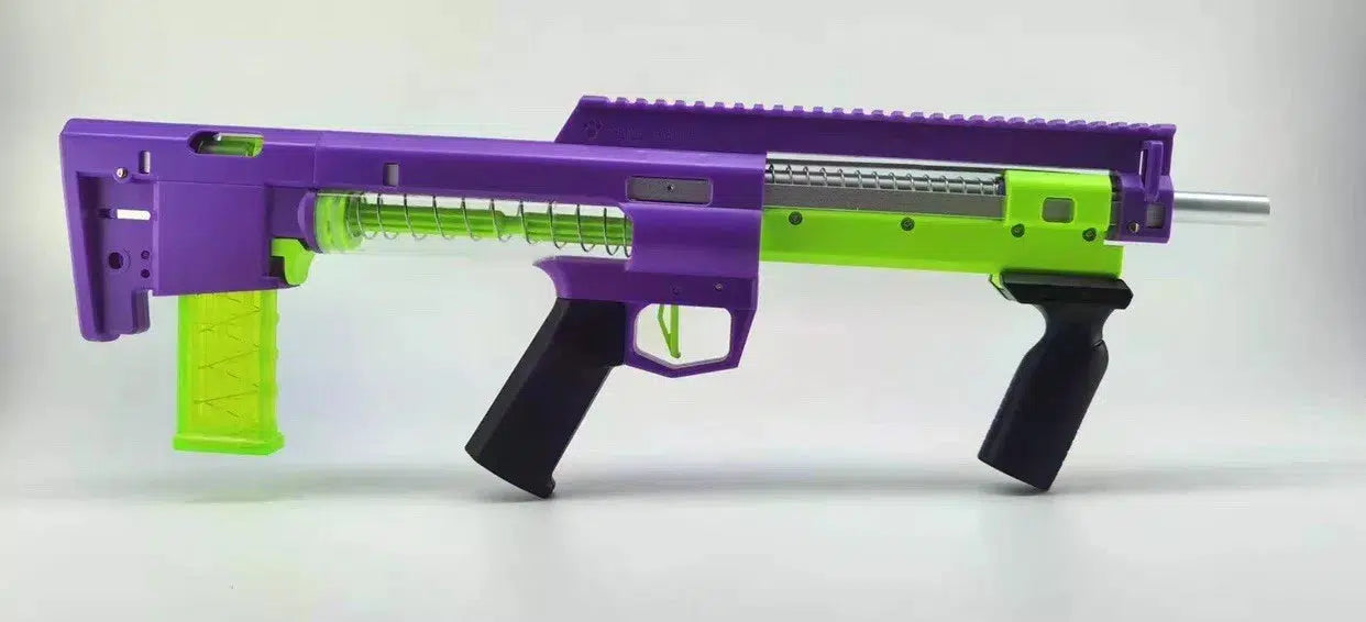 Mach dich bereit für packende Schaumschlachten mit dem YinLun Feline Injection Molding LYNX Schaumblaster. Dieser Bullpup-Mag- und Pump-Action-Blaster bietet Magazinwechsel mit geschlossenem Bolzen, Slam-Fire und ist mit allen Longshot- und Talon-Claw-Federn kompatibel. Mit einer robusten 1,6-mm-Feder und einem Metallkolben bietet er jede Menge Power.