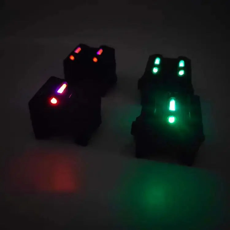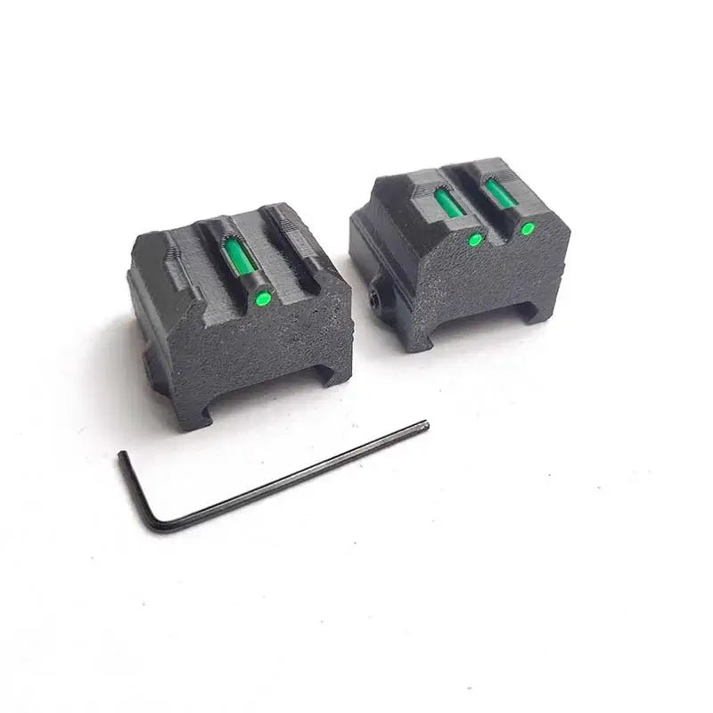 Dale un toque de estilo a tus pistolas de juguete con estas miras de fibra óptica que brillan en la oscuridad e impresas en 3D. Disponibles en verde o rojo, estas miras cuentan con una pequeña unidad de luz que les da un brillo único. Diseñadas para rieles Picatinny de 20 mm, están hechas de PLA duradero impreso en 3D. Incluyen pilas.