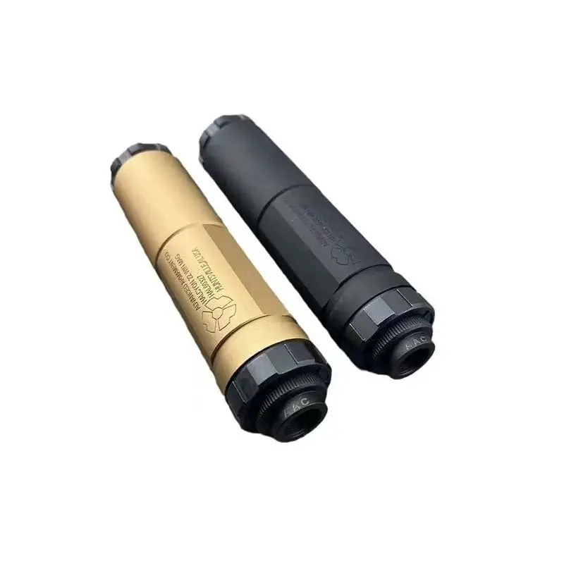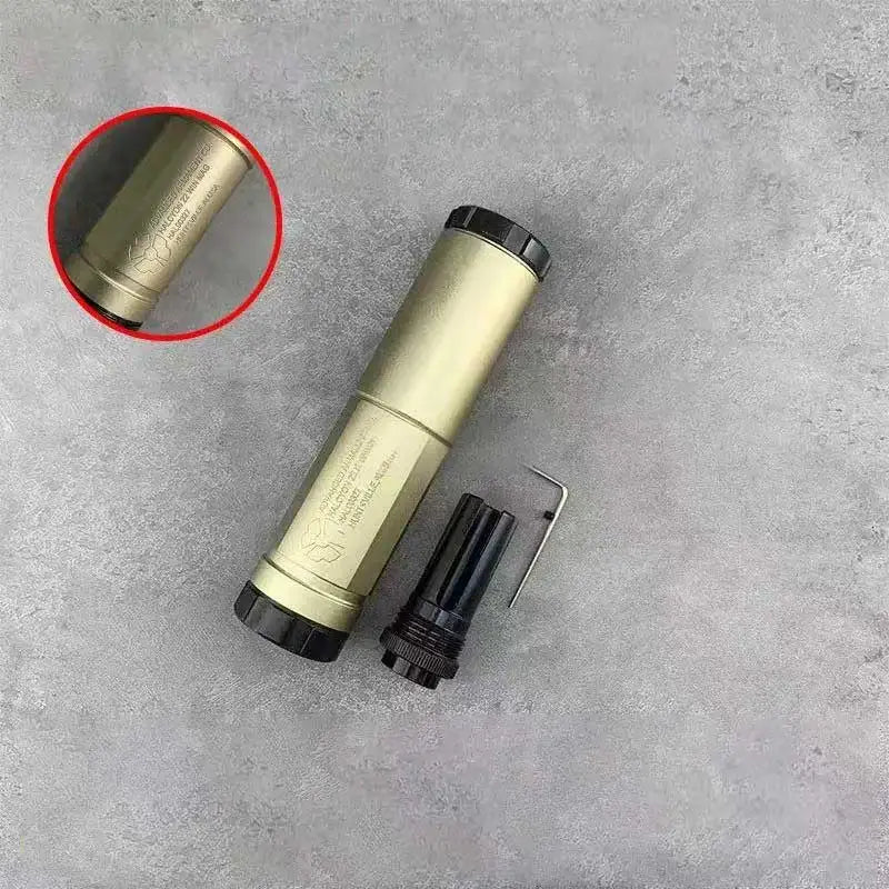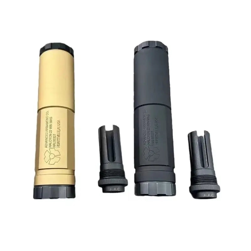 El silenciador metálico AAC Halcyon Steel de 14 mm CCW es el complemento ideal para tu pistola de gel o pistola de airsoft. Su diseño robusto y ligero proporciona máxima durabilidad sin sobrecargarlo. Gracias a sus apagallamas metálicos, este silenciador es perfecto para realzar la estética de tus pistolas de juguete. Fabricado con acero de alta calidad, está disponible en negro o canela y cuenta con una rosca M14 CCW. Mejora tu experiencia de tiro con el Halcyon.