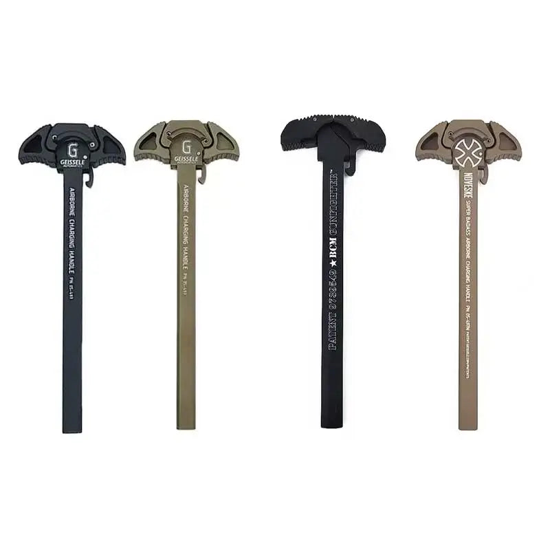 Fabricadas en aleación de aluminio mecanizado CNC con acabado anodizado duro, estas manijas de carga metálicas ATM ofrecen una durabilidad y precisión excepcionales. Con grabados y letras detalladas, están diseñadas con estilos inspirados en Geissels, DD, BCM y Noveske. Son compatibles con pistolas de gel y pistolas de airsoft equipadas con cajas de engranajes ATM. Diseñadas para un rendimiento fiable y un realismo mejorado.