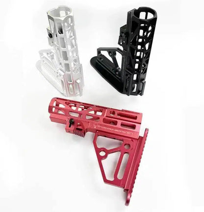 La culata ultraligera Fusion para carabina esqueletizada CNC es la mejora definitiva para tu pistola de gel o rifle de airsoft. Fabricada en aleación de aluminio ultraligera y con 5 posiciones ajustables, un pestillo de ajuste de perfil bajo y 3 orificios de liberación rápida, esta culata está diseñada para máxima comodidad y eficiencia al disparar. Fácil de instalar y disponible en negro, plateado o rojo, esta culata es el complemento perfecto para tu arsenal.