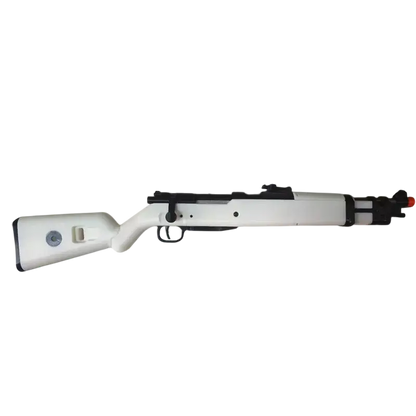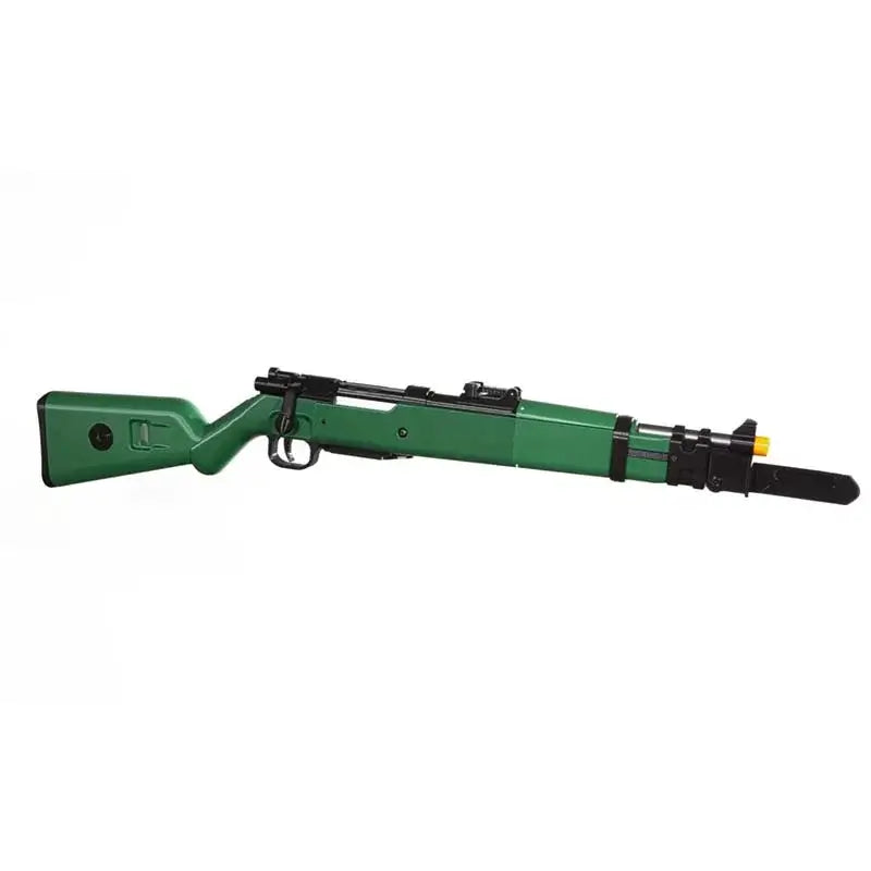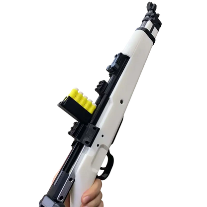- Pistola Nerf de francotirador estilo 98k impresa en 3D que dispara dardos de media longitud.