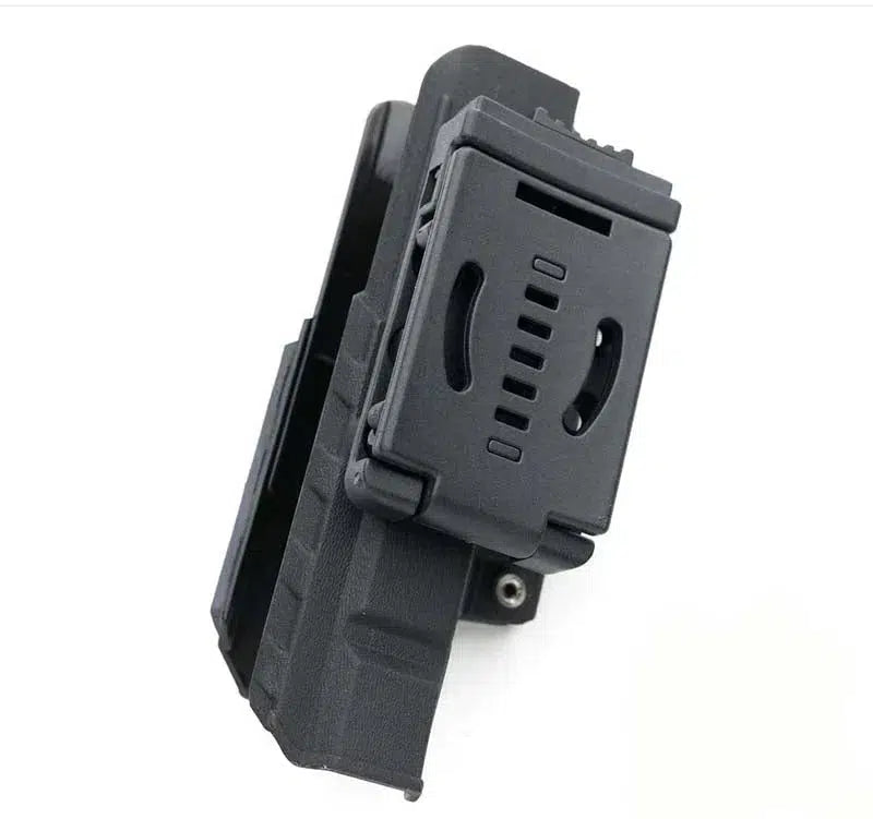 Esta funda está diseñada para el lanzador HC Diana y cuenta con un mecanismo de volante de aluminio para una sujeción segura. Se ajusta fácilmente al cinturón y mantiene el lanzador firmemente en su lugar. Incluye un imán para la funda y una placa que se puede incluir en el interior del lanzador, lo que activa el modo de espera al extraerlo. Esto ahorra batería y mantiene el lanzador listo para usar.