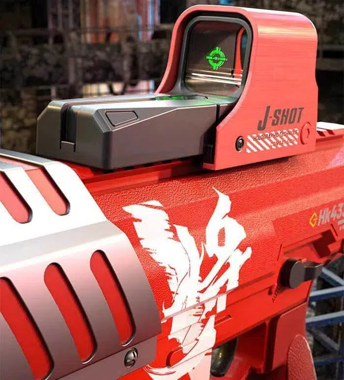 - Este lanzador de discos de espuma Scar-L funciona con electricidad y tiene una alta cadencia de fuego.