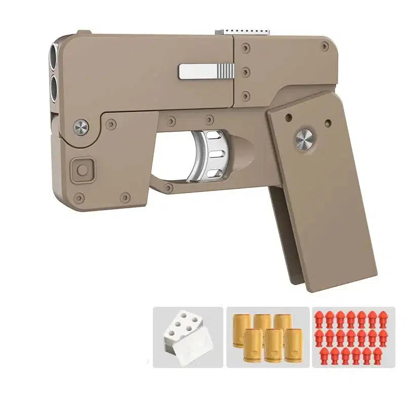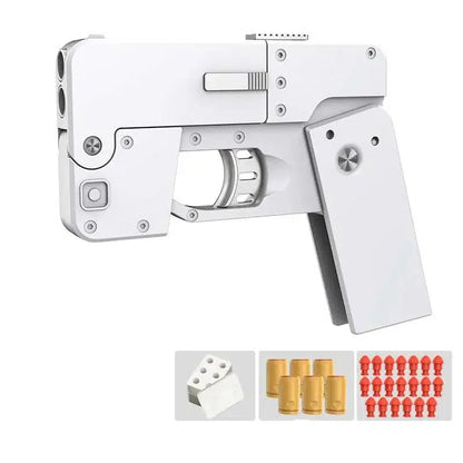 Compacta y portátil, la pistola de juguete plegable IC380 para celular es perfecta para situaciones de desenfunde rápido. Con doble cañón y expulsión de cartuchos con un solo botón, puedes disparar fácilmente dardos de goma blanda a una distancia de hasta 10 m. Incluye 6 cartuchos, 20 balas blandas y un recargador de dardos para una diversión sin límites.