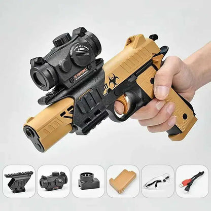 Diseñada y fabricada por expertos de JF, la pistola eléctrica Orbee 1911 con alimentación por tolva JF cuenta con modo de disparo manual/automático y una alimentación suave del cargador por tolva. Gracias a su soporte para riel, puedes conectar un láser o una linterna según tus necesidades. Disfruta de disparos precisos con la munición de bola de gel de 7 mm.