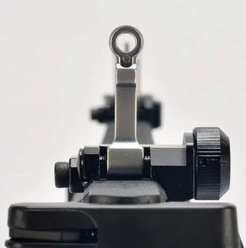 - La mira de hierro de respaldo KAC 300 es ajustable según la deriva.