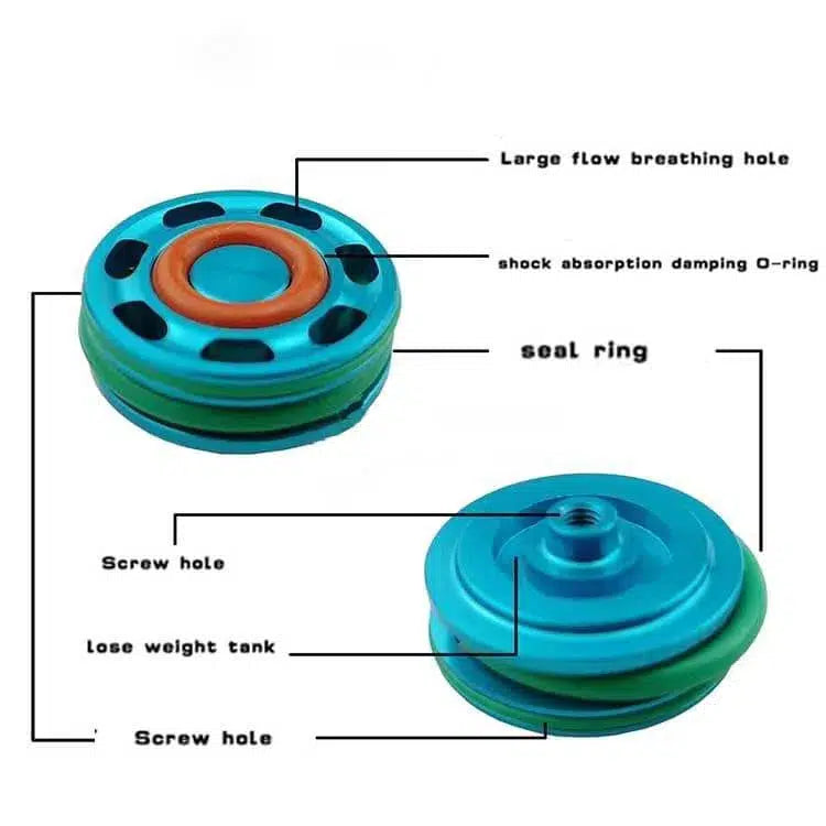- La cabeza del pistón tiene un gran orificio de respiración de flujo y una junta tórica de amortiguación de impactos.