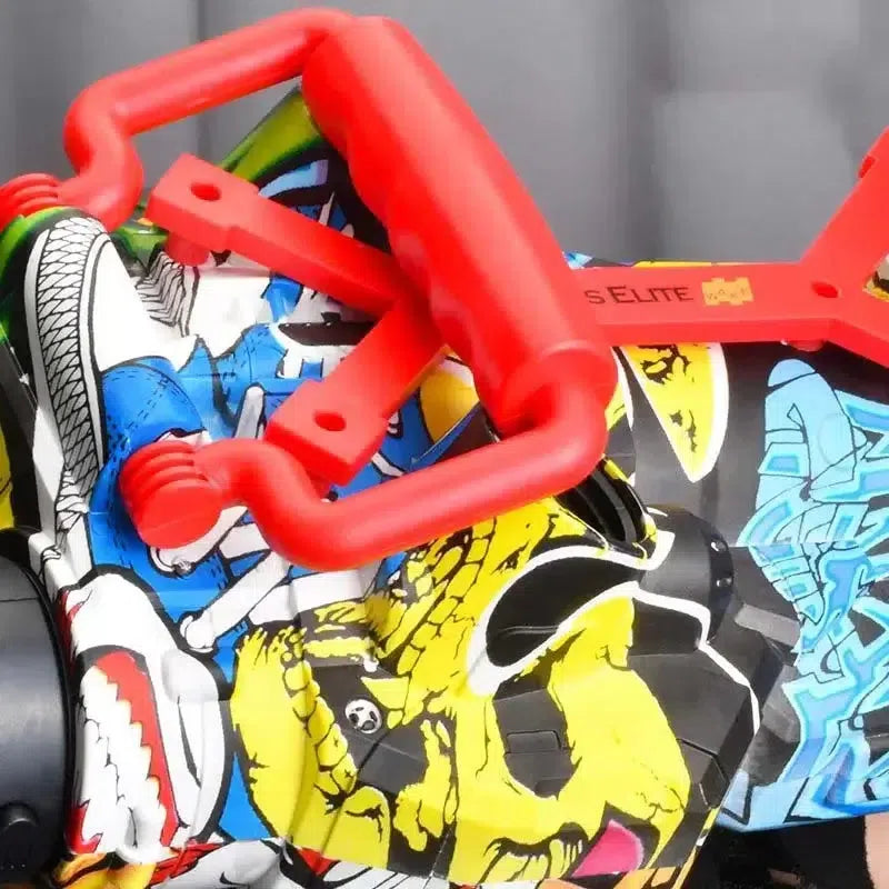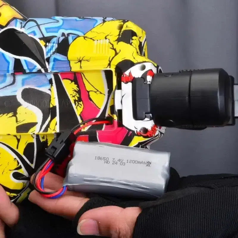 ¡Presentamos el lanzador de bolas de gel Gatling de 2 cañones con tolva! Este lanzador eléctrico cuenta con dos cañones giratorios y una tolva de gran capacidad, ideal para fuego automático continuo. Con su exclusiva carcasa de grafiti y su empuñadura de fácil agarre, seguro que triunfará en cualquier batalla de bolas de gel. ¿Pero lo más espectacular? ¡Su boca se ilumina al disparar! ¡Consigue el tuyo hoy mismo y únete a la diversión!