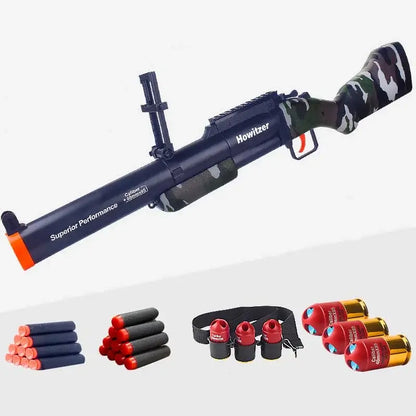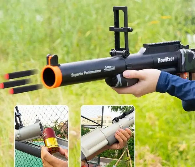 ¡Presentamos el lanzador de juguete Luncher de granadas Nerf de triple disparo M79 Howitzer! Con su modo de disparo manual y la posibilidad de disparar 3 dardos a la vez, este lanzador es una bomba. Prepárate para una diversión sin límites mientras destruyes objetivos a una distancia de hasta 12 m a una velocidad de 80 FPS.