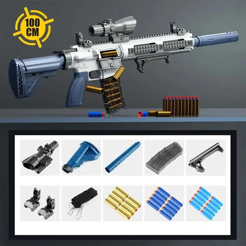 Domina el campo de batalla con el rifle de juguete con eyección de proyectiles M416 : ¡ el lanzador de dardos de espuma eléctrico definitivo que combina una expulsión realista de proyectiles , precisión de largo alcance y personalización total ! Ya sea que te gusten las guerras de Nerf, los juegos tácticos o la simulación militar , este rifle de juguete con eyección de proyectiles totalmente automático ofrece potencia, realismo y versatilidad en un solo paquete épico.
