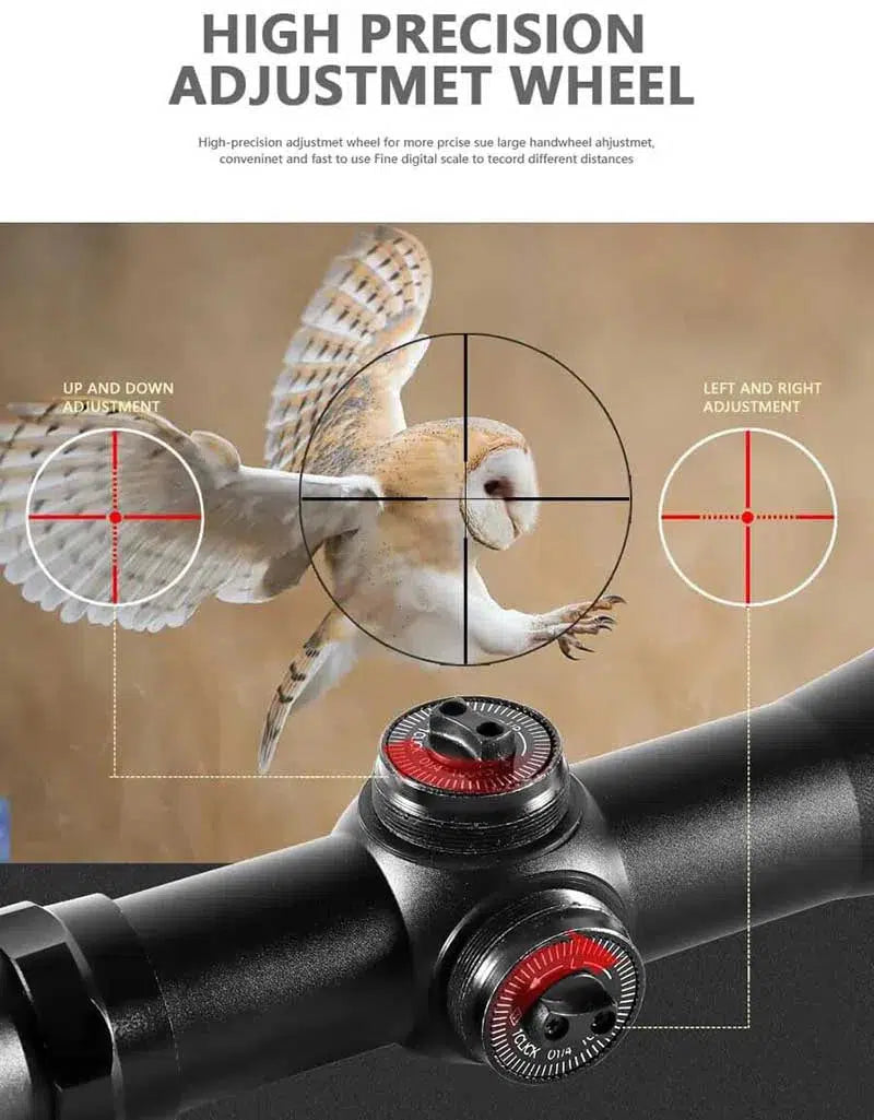 Esta mira telescópica compacta Vomz 4x32 para rifle de aire comprimido está fabricada en aleación de aluminio y pesa 228 g. Tiene una longitud de 166 mm y un diámetro de tubo de 25,4 mm. La montura es de 20 mm y su retícula es de alambre. Ofrece un aumento de 4x y un diámetro de lente objetivo de 32 mm, con un diámetro de ocular de 30 mm. Es de alta precisión y antivaho.