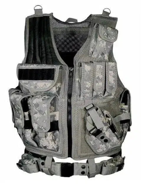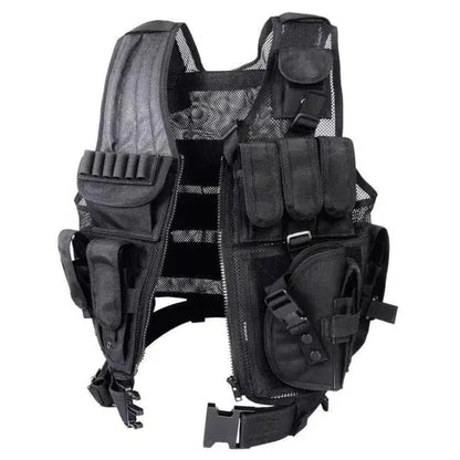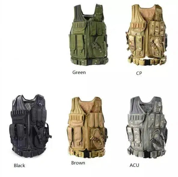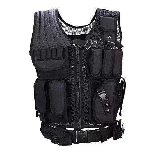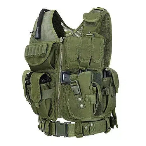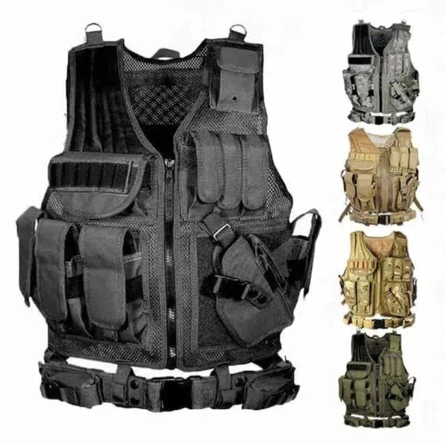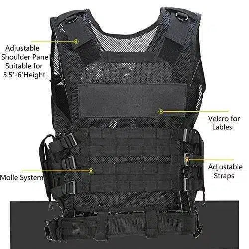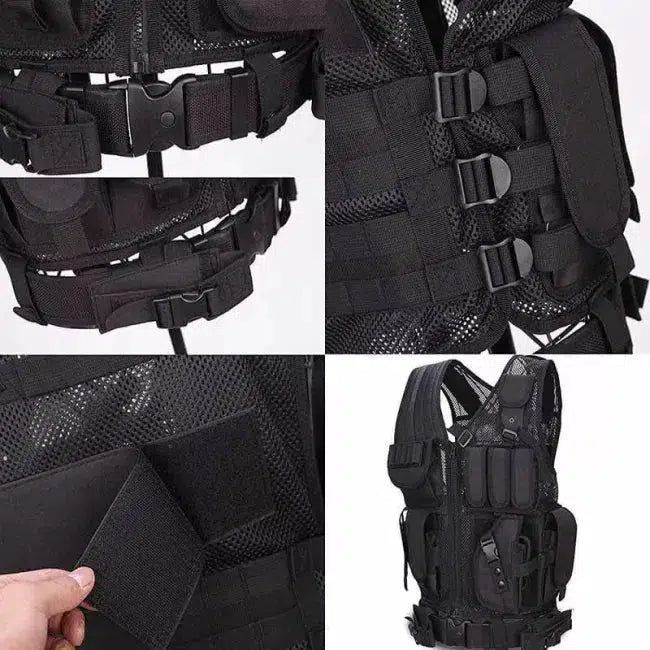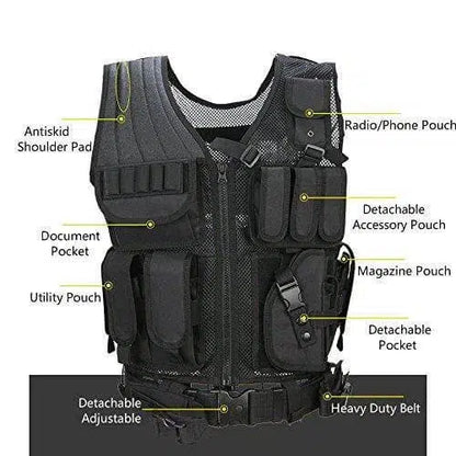 El chaleco táctico multibolsillo SWAT está diseñado para actividades al aire libre, con hombros ajustables y cintura de 101 cm. Su fabricación en nailon de alta calidad proporciona una resistencia superior a la tracción y al desgaste para juegos de guerra, pesca, supervivencia, tiro y mucho más. El bolsillo multifuncional admite tres portacargadores, tres portamuniciones, una bolsa grande para cartuchos y un bolsillo para documentos. Práctico y transpirable, este chaleco táctico es ideal para aficionados al ejército y para escaramuzas con pistolas de gel.