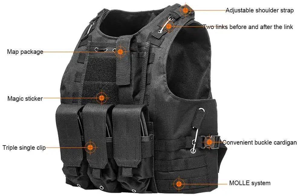 Diseñado para entusiastas de la táctica, este chaleco táctico anfibio Molle ligero y multifunción ofrece una durabilidad superior gracias a su fabricación en tela Oxford impermeable de 600D. El sistema CIRAS cuenta con cables de acero de ocho núcleos recubiertos de goma suave para un desmontaje rápido, mientras que el sistema MOLLE estándar admite todos los módulos EDC. Con un práctico diseño de cinta mágica y hebillas en hombros y cintura, este chaleco de 1 kg permite ponérselo y quitárselo rápidamente. Perfecto para juegos de guerra con pistolas de gel, paintball, airsoft y actividades de CS al aire libre. Disponible en varios colores para adaptarse a tus necesidades tácticas.