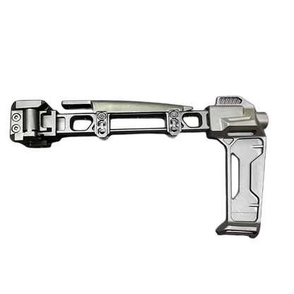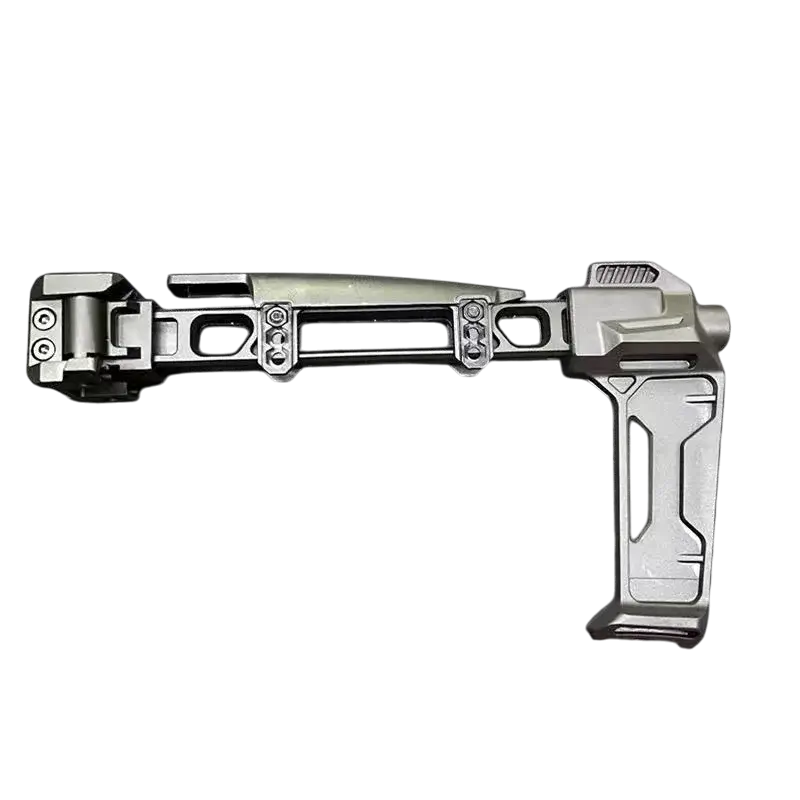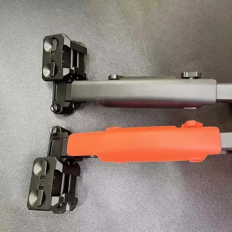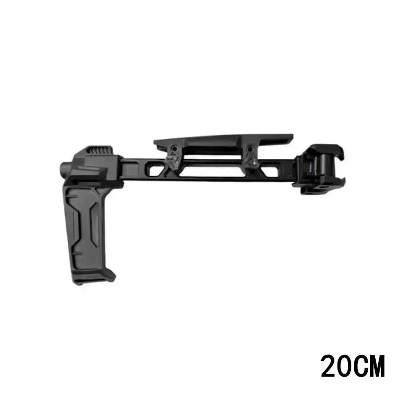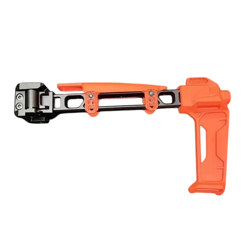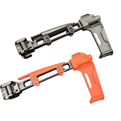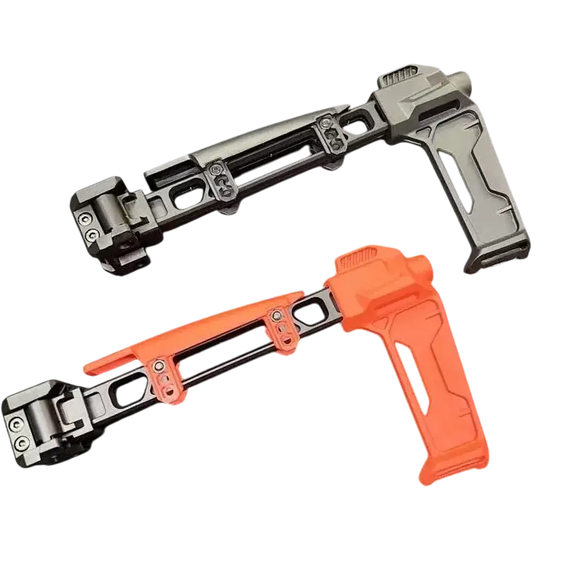 La culata plegable ambidiestra Si para riel Picatinny ofrece versatilidad gracias a su capacidad de plegarse a la derecha o a la izquierda. Fabricada con nailon resistente y un adaptador metálico, es compatible con sistemas de rieles Picatinny de 20 mm. Ideal para modificaciones de blásters MPX, MCX y Uzi Pro.