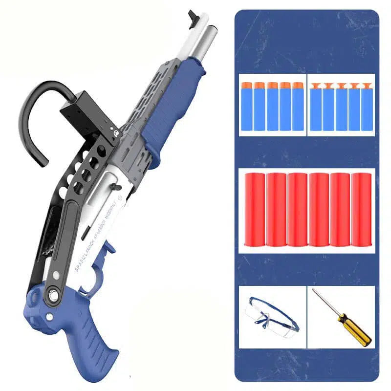 - Esta pistola lanzadora de espuma UDL Spas-12 está hecha de metal y nailon, y su acción de bombeo manual simula el proceso de expulsión del proyectil de una spas12 real.
