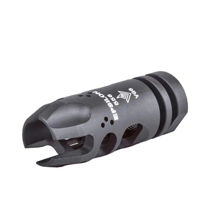 Diseñado para blásters de juguete, el compensador de freno de boca VG6 Epsilon 556 de 14 ccw es el accesorio perfecto gracias a su material de acero inoxidable y su rosca de 14 mm en sentido contrario a las agujas del reloj. Con un peso de 70 g y un elegante color negro, este paquete incluye un freno de boca VG6 para decoración.