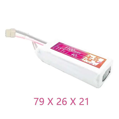 - Batería de 11,1 V y 1100 mAh con enchufe XT30