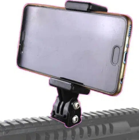 Attach your cellphone securely to your 20mm picatinny gel blaster, nerf, or airsoft rail with our 20mm Rail Cellphone Clip Holder. Made of durable nylon, it allows for easy mounting of a sports camera like a GoPro after removing the bracket. Convenient and versatile for use during play.