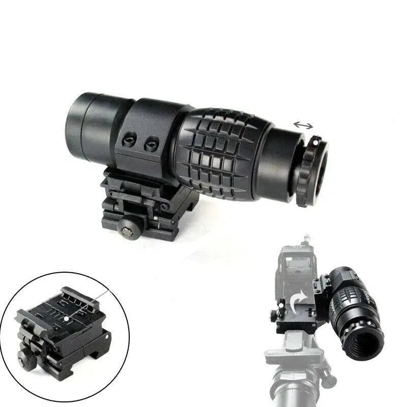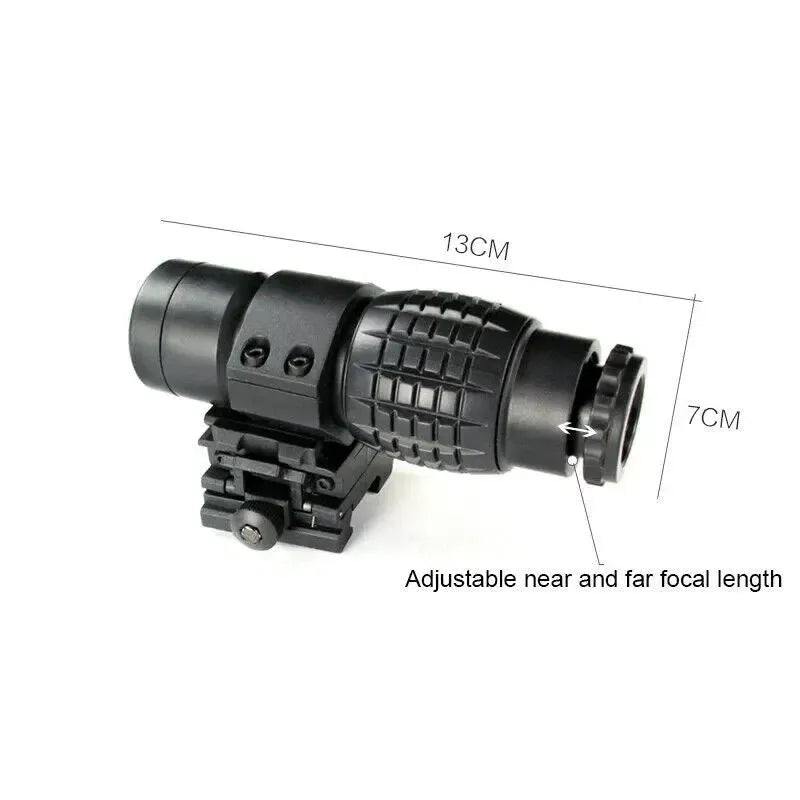 Enhance your accuracy with the 3x Magnifier Adjustable Flip Up Scope. This sight scope offers a 3x magnification for quick target acquisition and is compatible with most gelsoft, airsoft, and nerf toy guns. The flip-up feature and fit with a picatinny 20-21mm rail make it easy to use and versatile. Available in black or tan, made with durable plastic.