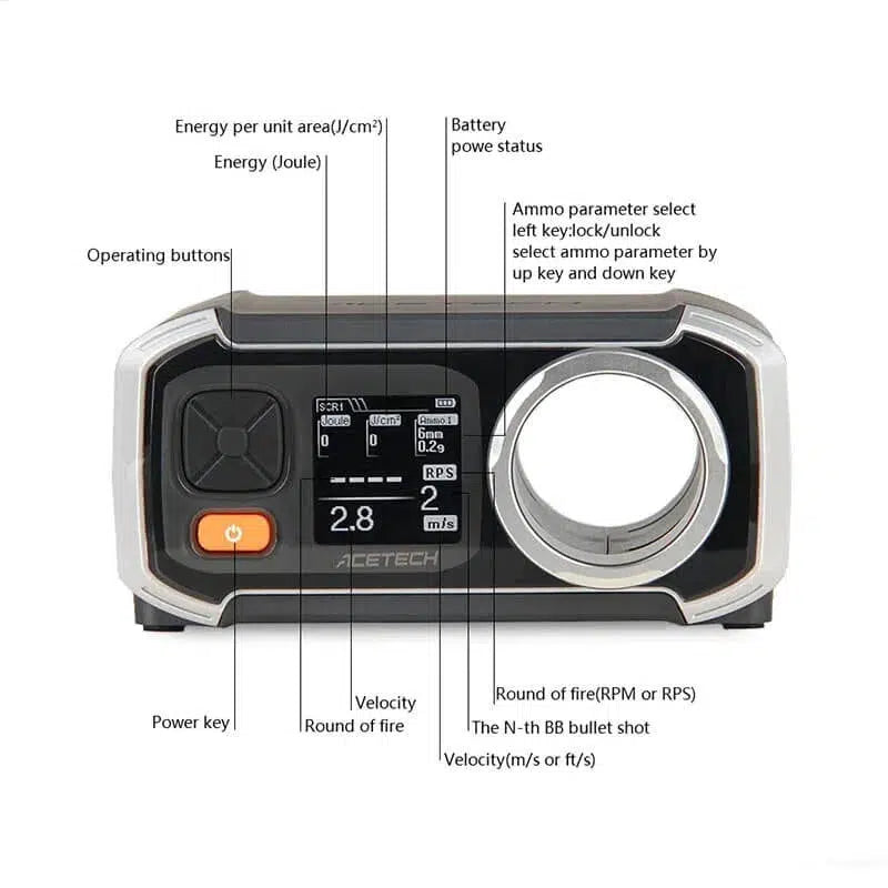 Expertly measure the speed of your Airsoft Gel Ball Blaster with AceTech AC6000 Chronograph. It's with the patented LED lens design and IR sensor. Obtain accurate readings for improved performance and precision in your gameplay.