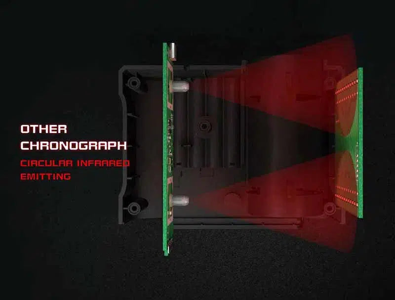 • Measures Muzzle Velocity from 30m/s - 400m/s (90ft/s -1200ft/s).