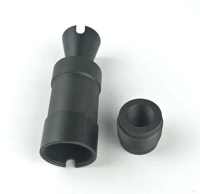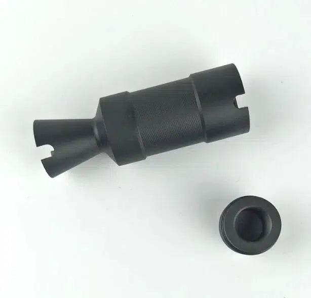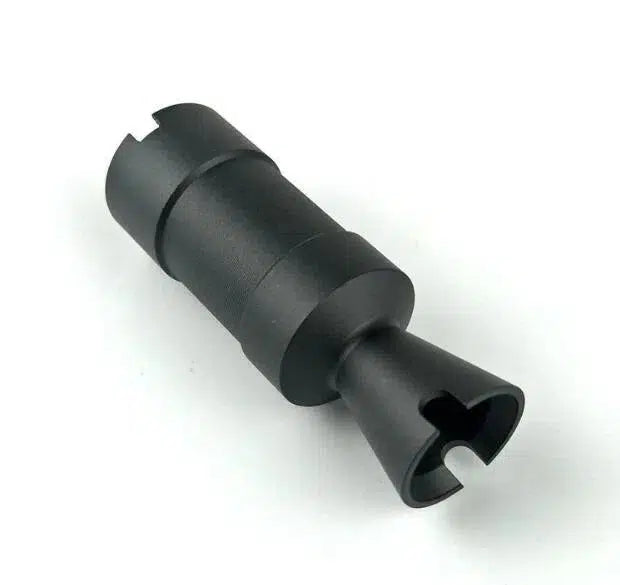 Expertly crafted for AK gel blaster guns, the AK Gel Blaster Metal Flash Hider offers a sleek and durable design. Made from CNC aluminum metal, this flash hider includes a 14mm CCW adaptor for easy installation. Enhance your blaster's look and performance with this black flash guard.