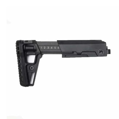 Experience ultimate versatility and mobility with the Alpha King AK-12 Folding Telescopic Buttstock. Its foldable and telescopic design is compatible with AK-12 gel blasters and airsoft guns, providing optimal customization and convenience for your gameplay.