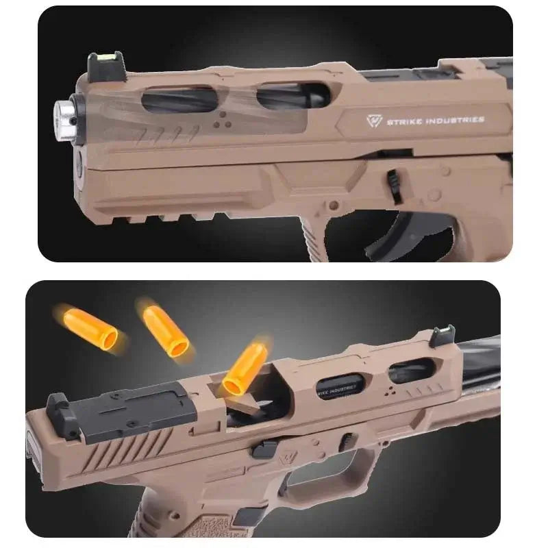 Introducing the CZS SI G17 Shell Ejecting Laser Tag Toy Gun! With realistic blowback action and shell ejection, immerse yourself in an authentic experience. The last round slide lock and quick disassembly design make it convenient for use. Its 20mm picatinny rail and RMR mount plate allow for easy installation of accessories. Lightweight and durable, get ready for endless hours of fun with this toy gun.