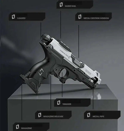 The Dark Knight DK-01 is an innovative foam dart blaster featuring shell ejection technology. With each shot, the gun slide automatically pulls back and ejects a bullet shell. Made with durable materials, this pistol ensures safe and fun play for all ages.