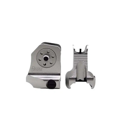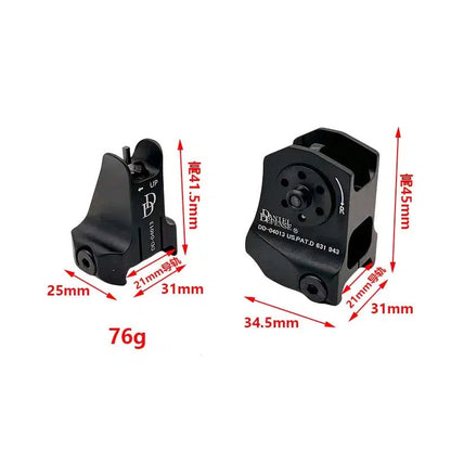 Enhance your airsoft or gel blaster's authenticity with the DD Fixed Metal Front Rear Sights Combo. Made with precision CNC metal, these one piece iron sights provide a streamlined and lightweight design. Easily attach with slotted screws for a cool and authentic look.