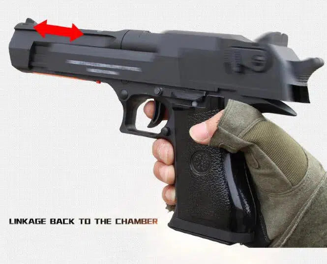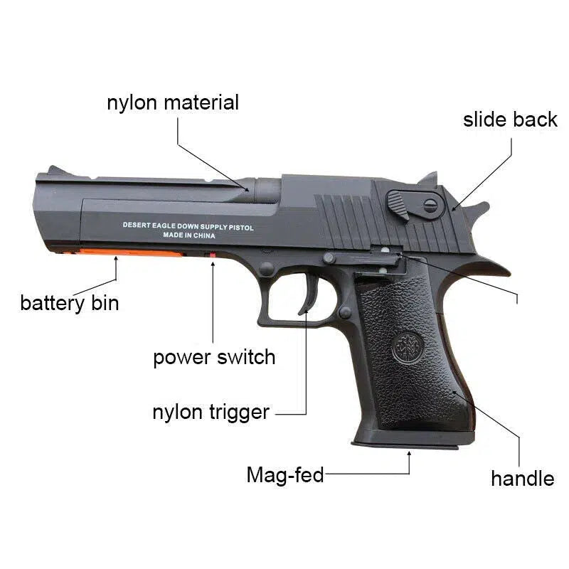 Unleash your inner action hero with the Full Auto RX Desert Eagle Gel Blaster! This powerful gel gun with blowback features fully automatic firing and shoots 7mm water-based gel balls for safe and exciting play. Easy to use and loads of fun, it's perfect for backyard battles and role-playing adventures.