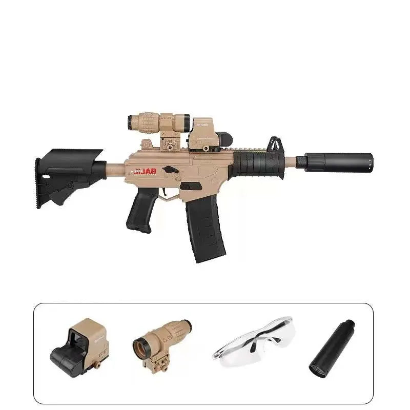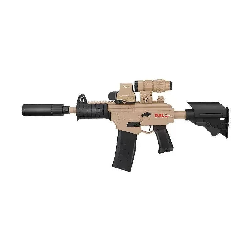 Take your gel ball battles to the next level with the Handi Galil Electric Gel Ball Blaster! This galil style gun features a mag-fed design, with the option for semi-automatic or full-auto shooting modes. Experience realistic blowback action and use the special modular 7.4v battery for extended playtime. Equipped with a tracer suppressor and rich accessories, this full nylon gun is ready for action.