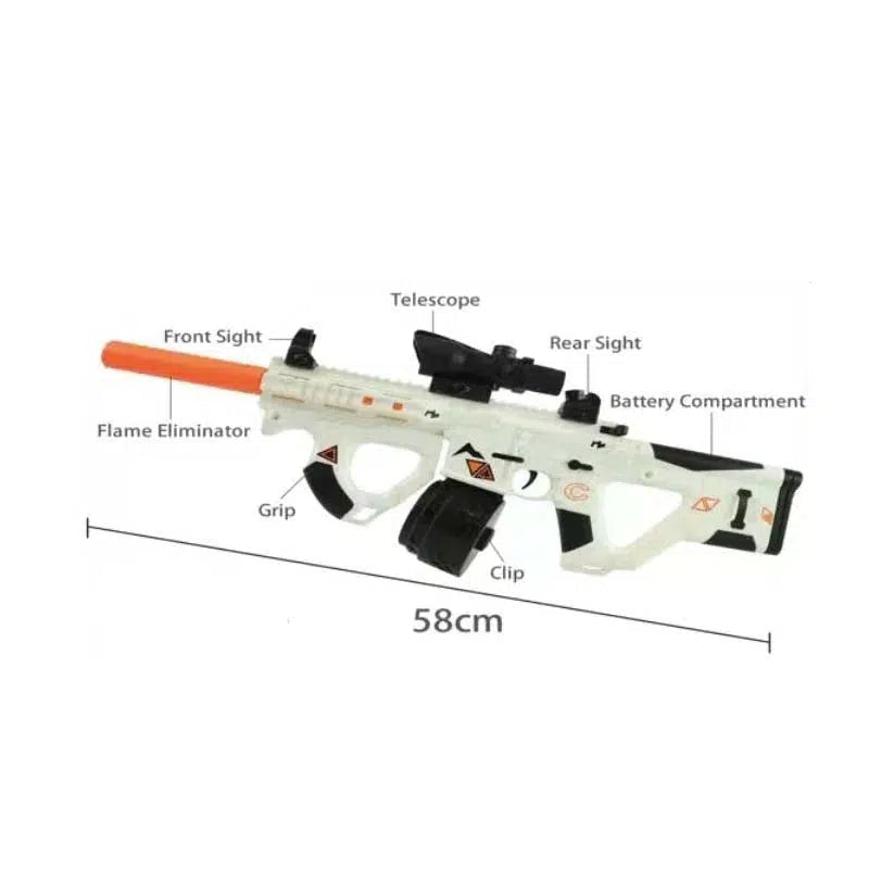 Upgrade your game with the HERA ARMS CQR M4 Electric Orbeez Gun. This cqr gel blaster offers both manual and full auto fire modes and comes in white, black, or gray. With a firepower of up to 110 FPS and a shooting range of 20m, it's perfect for long-range battles. Each shot fires 7mm gel balls, and measures at a compact 76cm for easy handling.