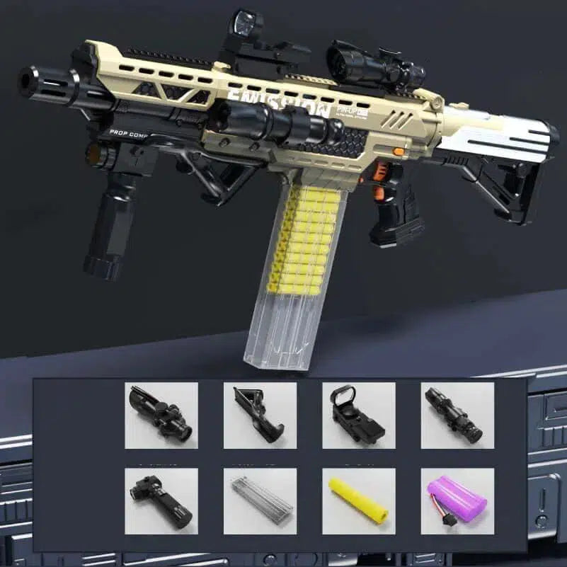 Take your foam blasting to the next level with our High Rate of Fire Emission V6 Foam Dart Blaster! With 6 powerful flywheels, a double stack mag, and a shooting range of 20-25m, this tactical electric nerf blaster will surely take down any target. Plus, its lightweight design and rich accessories make it easy and versatile to use for any task. Upgrade your foam blasting game today!