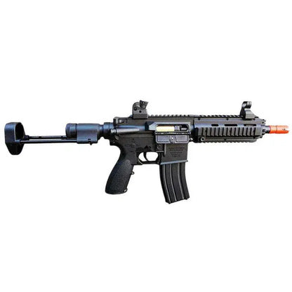 The JM Gen 13 HK416C Gel Blaster is a meticulously designed toy gun that replicates the iconic Heckler & Koch HK416C assault rifle. This high-performance gel blaster features a stable and powerful Gen8 gearbox, making it compatible with Gen8 gearbox parts for easy upgrades. Crafted with quality materials and detailed craftsmanship, it includes a PDW extendable butt stock, full nylon shells, and iron sights for an authentic experience.
