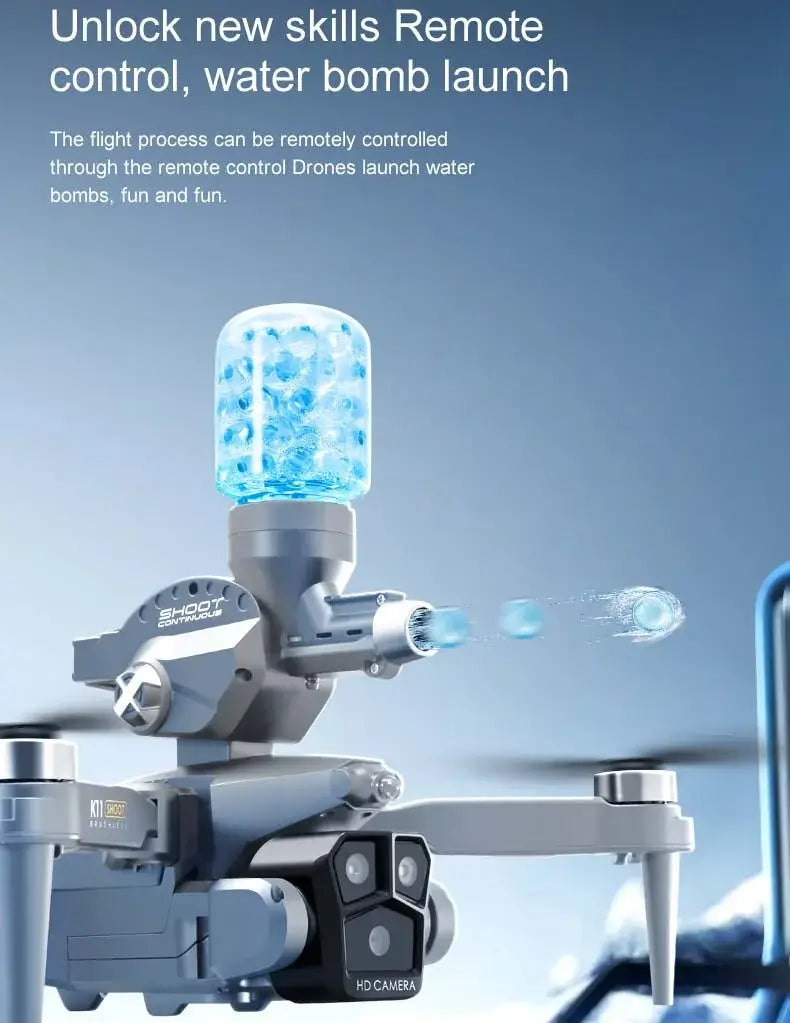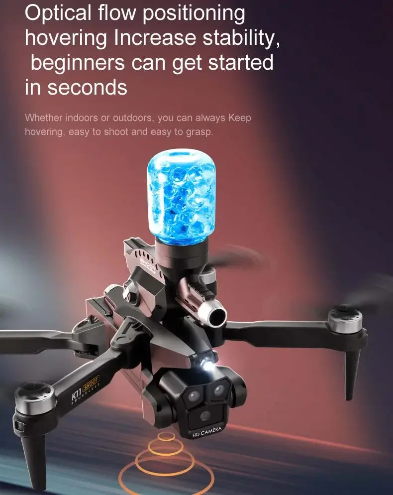 levate your drone experience with the K11 Max, a high-performance brushless motor quadcopter designed for 8K/4K cinematic aerial photography and exciting gel ball shooting action. Whether you're a photography enthusiast, an FPV flyer, or a thrill-seeker, this triple-camera drone delivers unmatched versatility, stability, and fun.