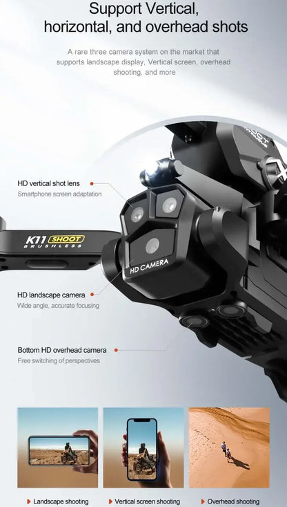 K11 Max Brushless 3 HD Cameras Remote Control Gel Blaster Drone