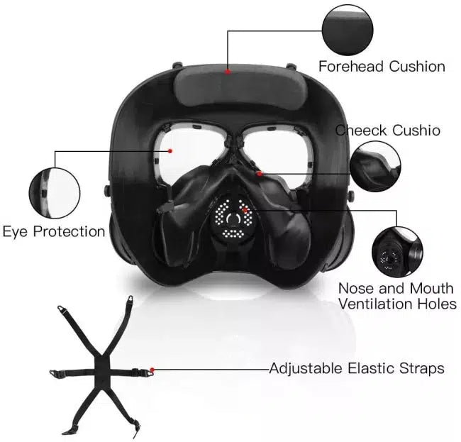 1. Full coverage protection by the mask - eyes, nose, mouth.