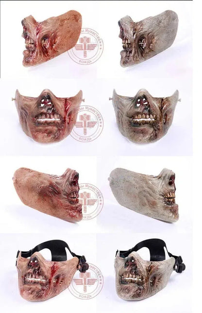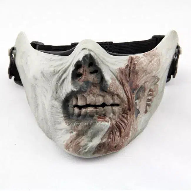 Transform into a zombie with our M05 Half Face Mask! Made with impact-resistant plastic, it protects against BBs and provides a comfortable fit with adjustable straps. Perfect for airsoft, hunting, and military use. Add a touch of horror to your cosplay or Halloween party. Package includes 1x zombie tactical mask.