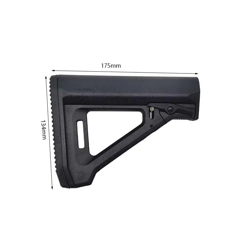 The MOE RL AR15 Collapsible Cabine Nylon Buttstock offers increased comfort and flexibility for optimal shooting. Featuring a reversed lever for LOP adjustment without breaking cheek weld, rear M-LOK slot for sling attachment, and rubber butt-pad for a customizable fit. Made of durable nylon material and compatible with AR-15 rifle style gel blasters and airsoft guns.